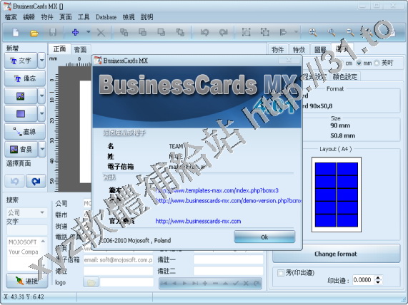 Mojosoft BusinessCards MX v4.02 繁體中文正式版(商業名片製作軟體)